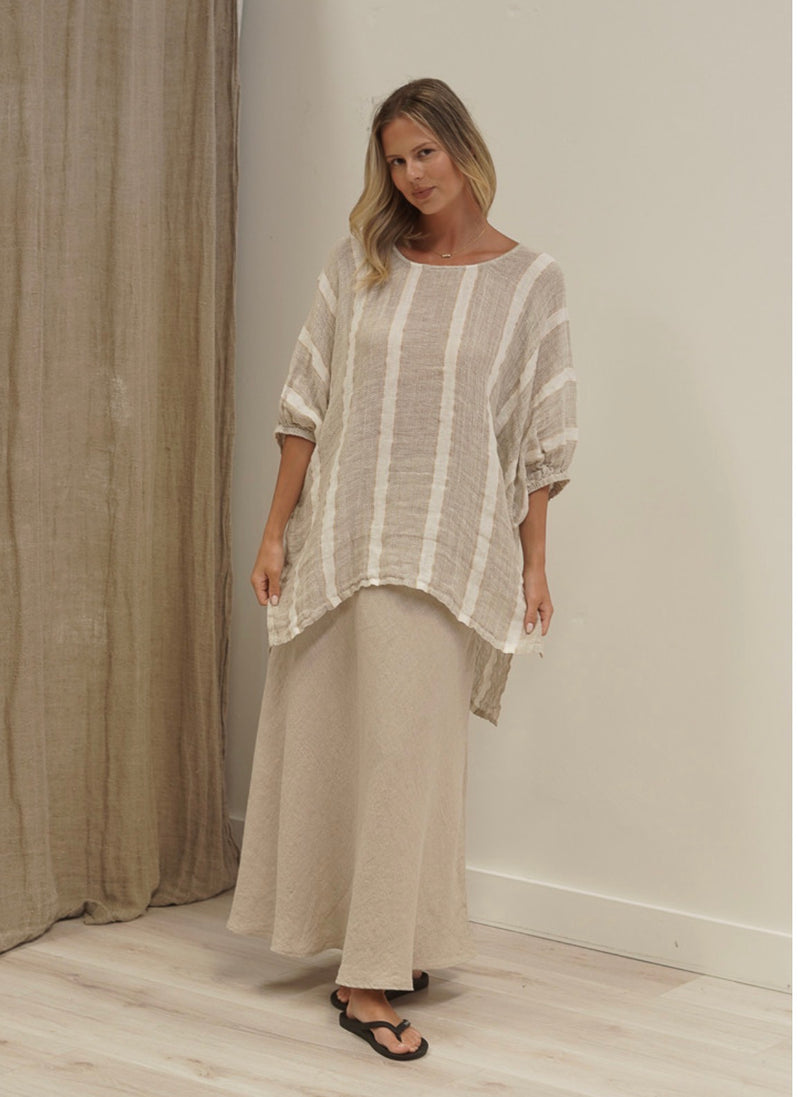 Rustic Linen - Valentina - Long Sleeve Top - Brown/Natural
