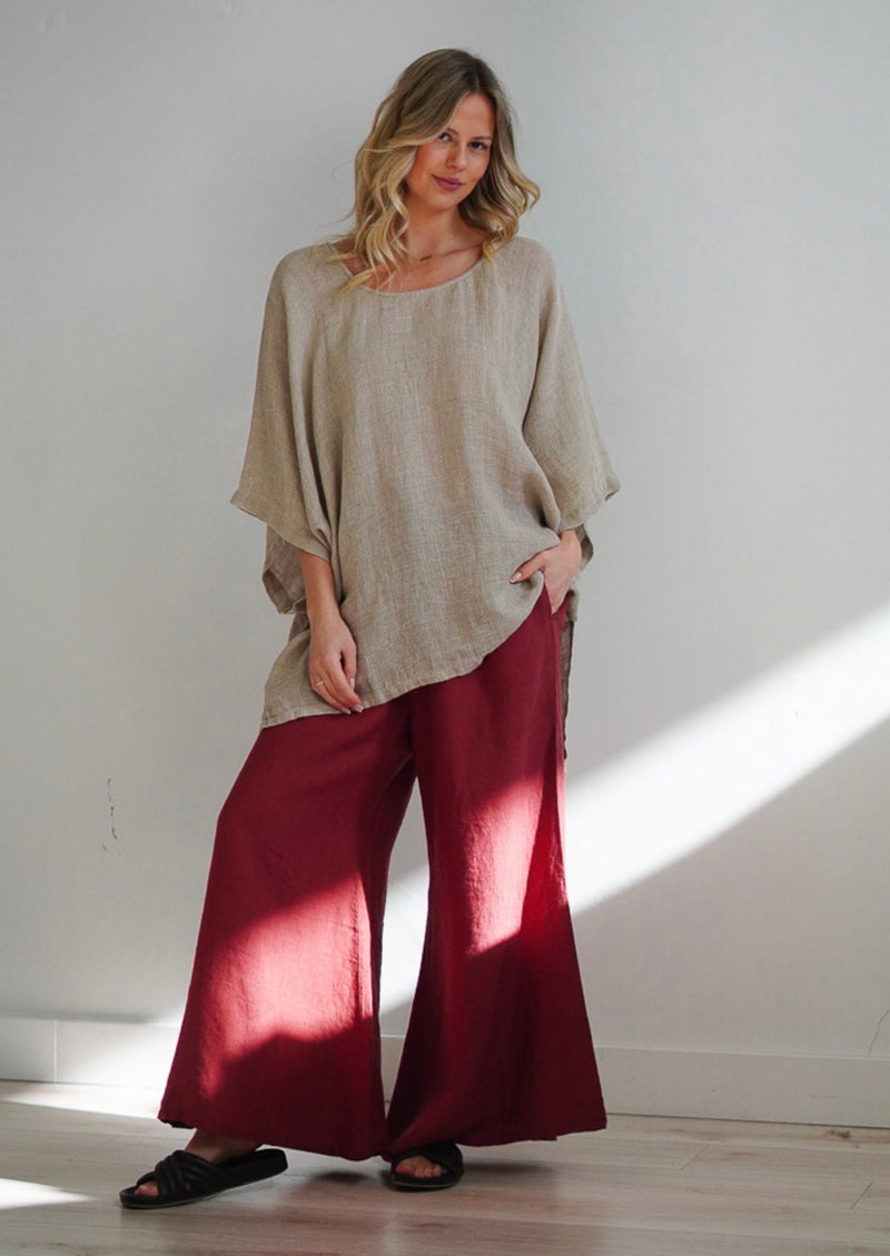 Rustic Linen - Alessa - Wide Leg Pants - Mahogany