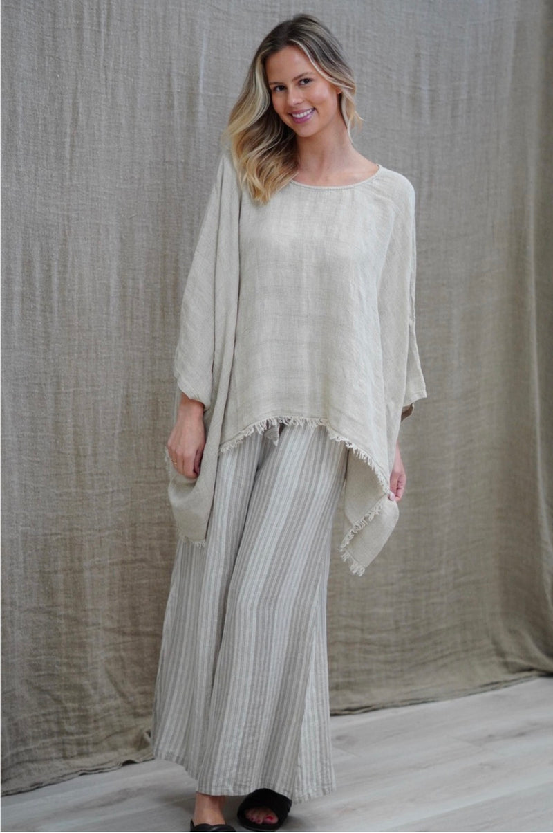 Rustic Linen - Alice - Fringed Poncho - Natural Combo