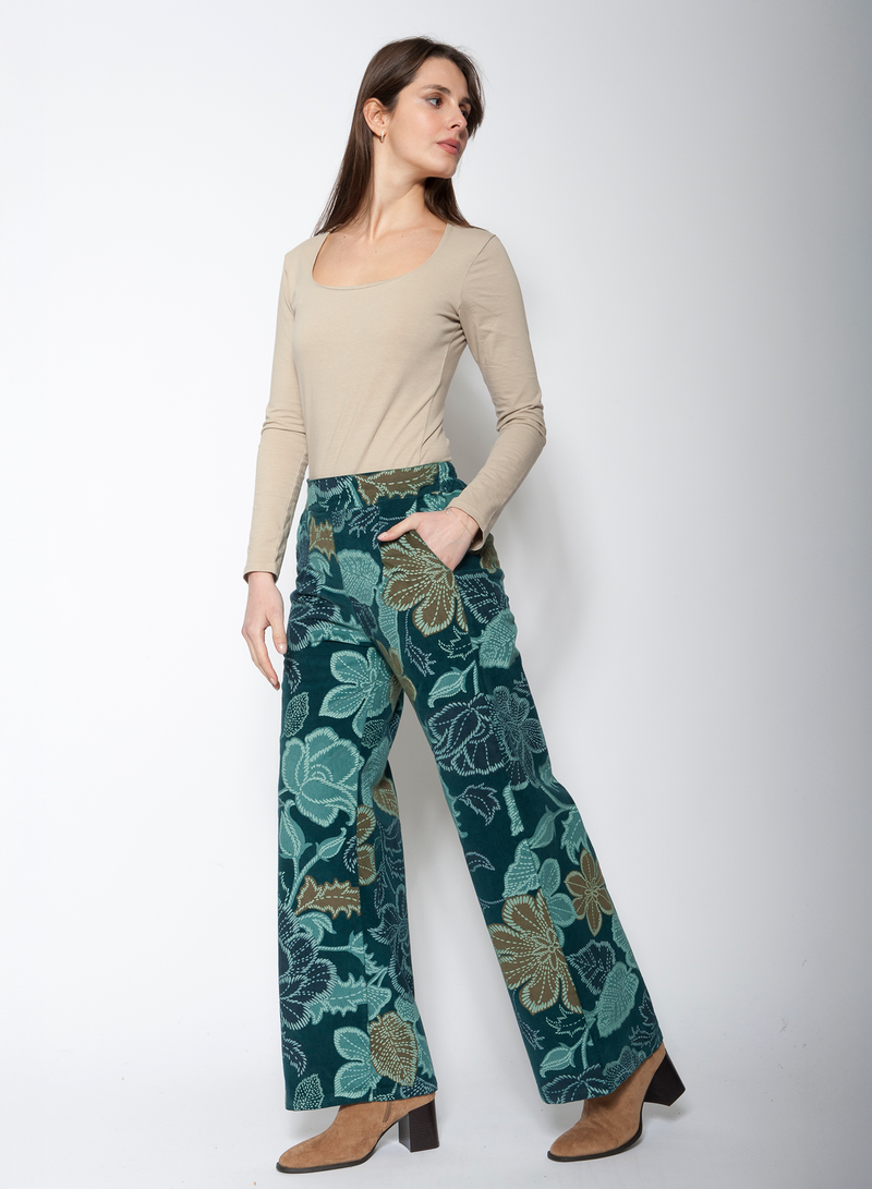 Blueberry Italia - Penelope - Floral Print Fine Cord Pants - Navy