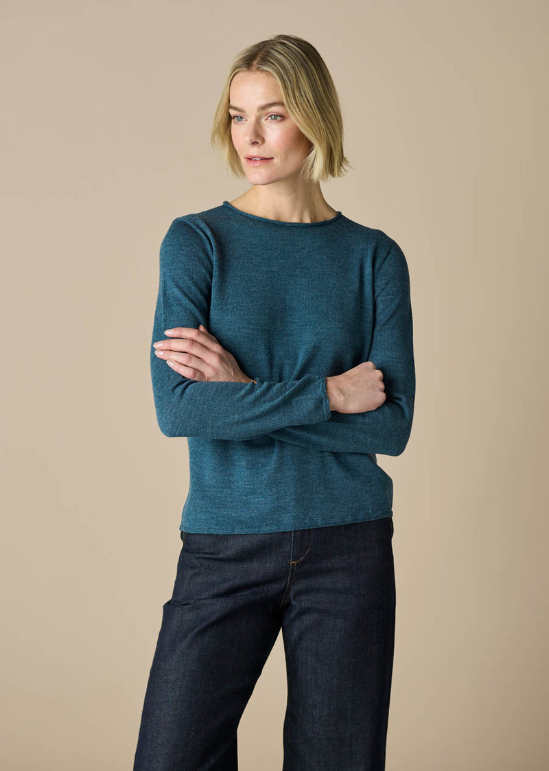 UIMI - Phoebe Fine Australian Merino Wool Jersey Crew Top - Bluebell