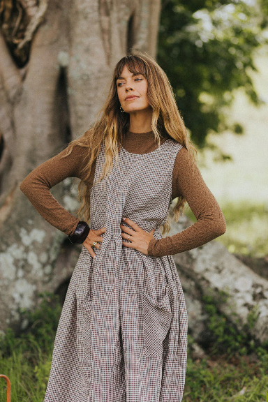 Montaigne - Sartene - French Linen Dress - Tiny Brown Gingham