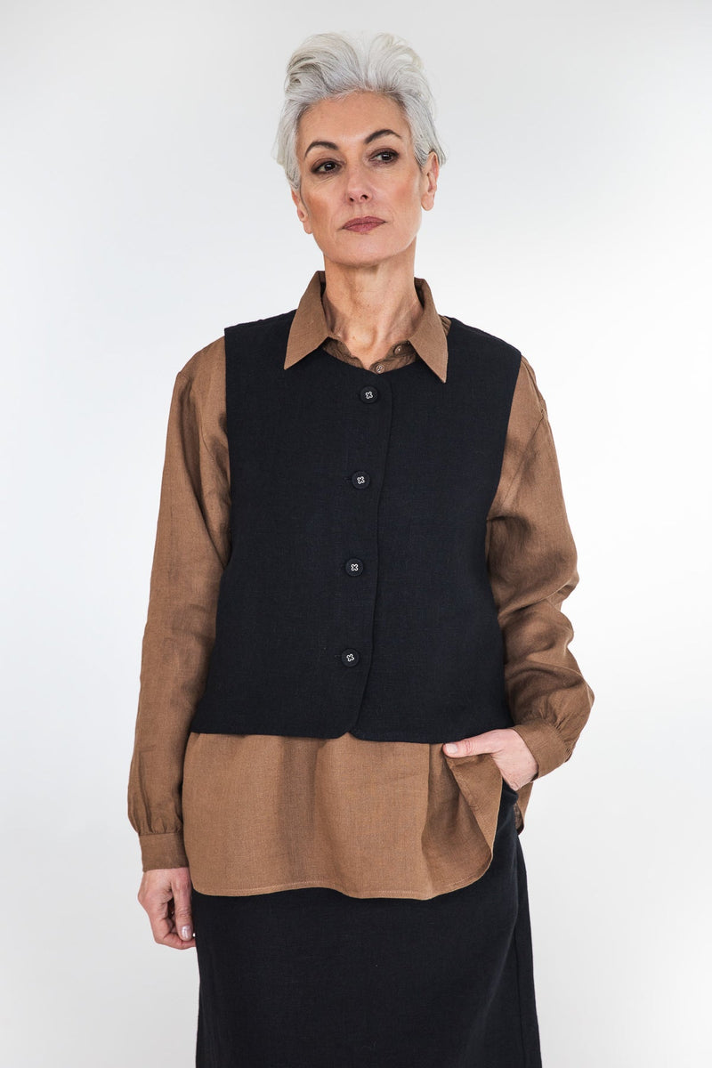 Eva’s Sunday - Shelby - European Linen Vest Jacket - Black