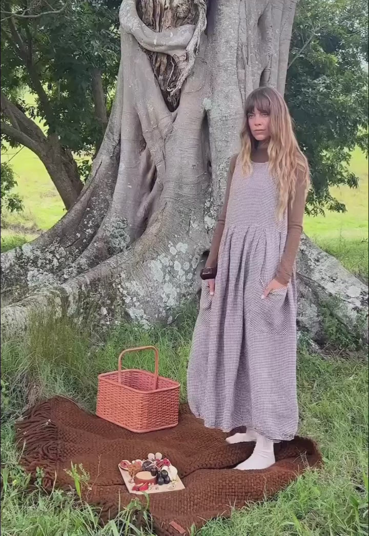 Montaigne - Journee - French Linen Dress - Blue Brown Check