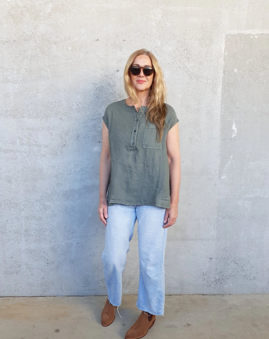 Montaigne ‘Perla’ Italian Linen Cap-Sleeve Top - LAST ONE - Ocre