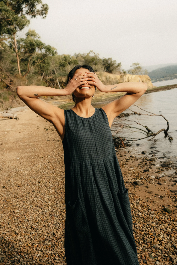 Montaigne - Sartene - French Linen Dress - Blue Green Check