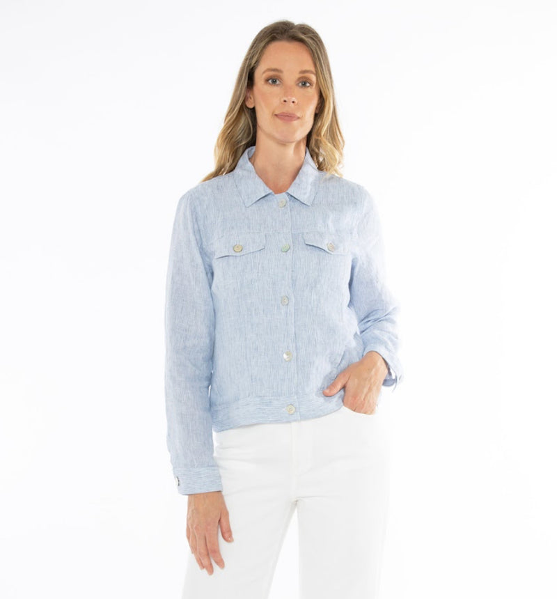 JUMP Clothing Core Stripe Linen Jacket - Denim/White