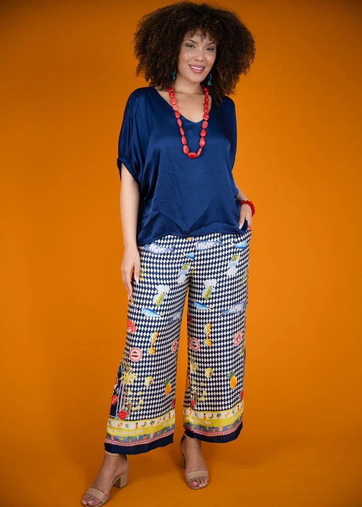 Donna Donna ‘Soho Park’ Italian Satin Top - Blue