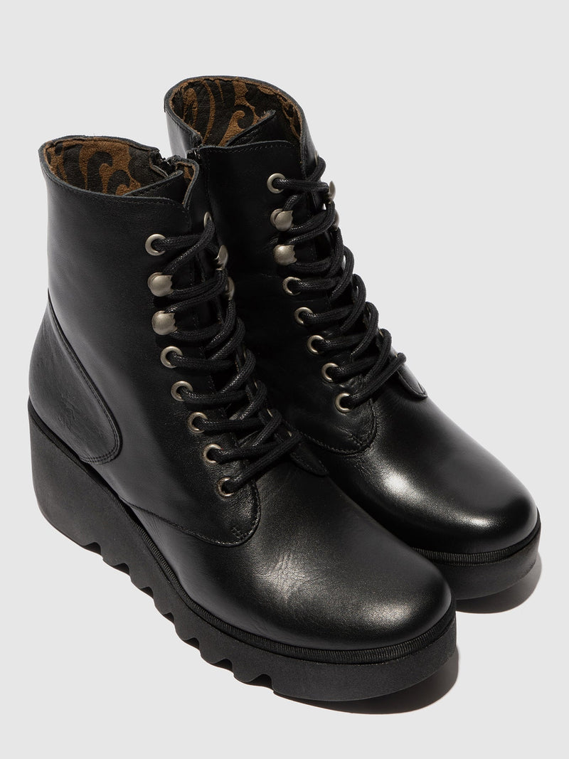 Fly London 'Birr' Lace Up Leather Boots - Black - LAST PAIR - Size 41