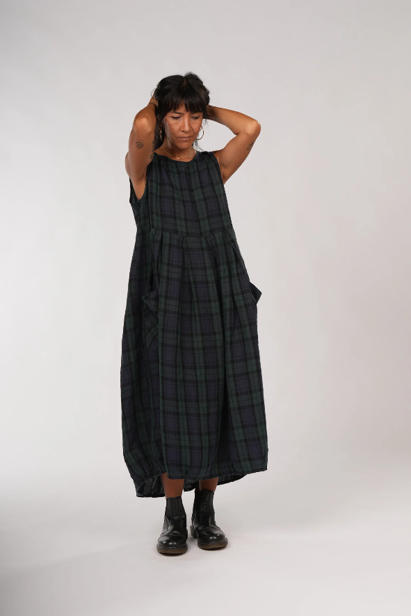 Montaigne - Sartene - French Linen Dress - Blue Green Check