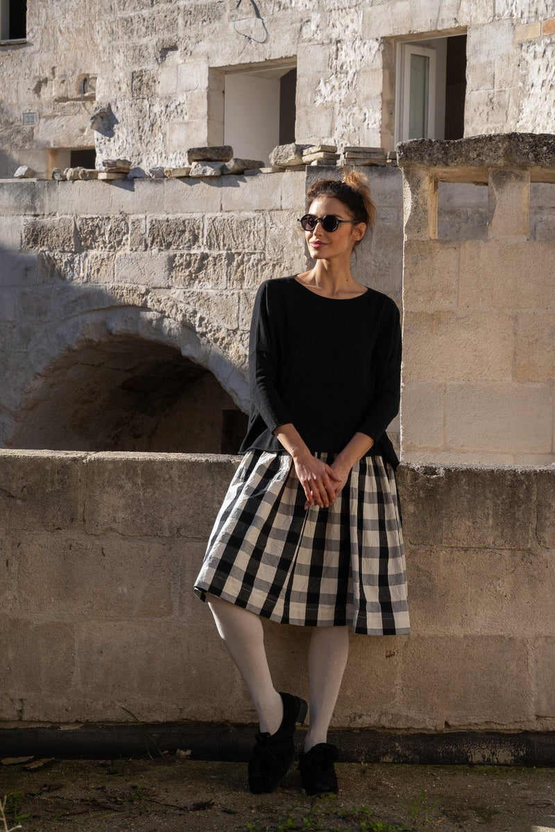 Meg By Design - High Tea Slip Dress Short Cotton Canvas - Monochrome Check - LAST - Size L