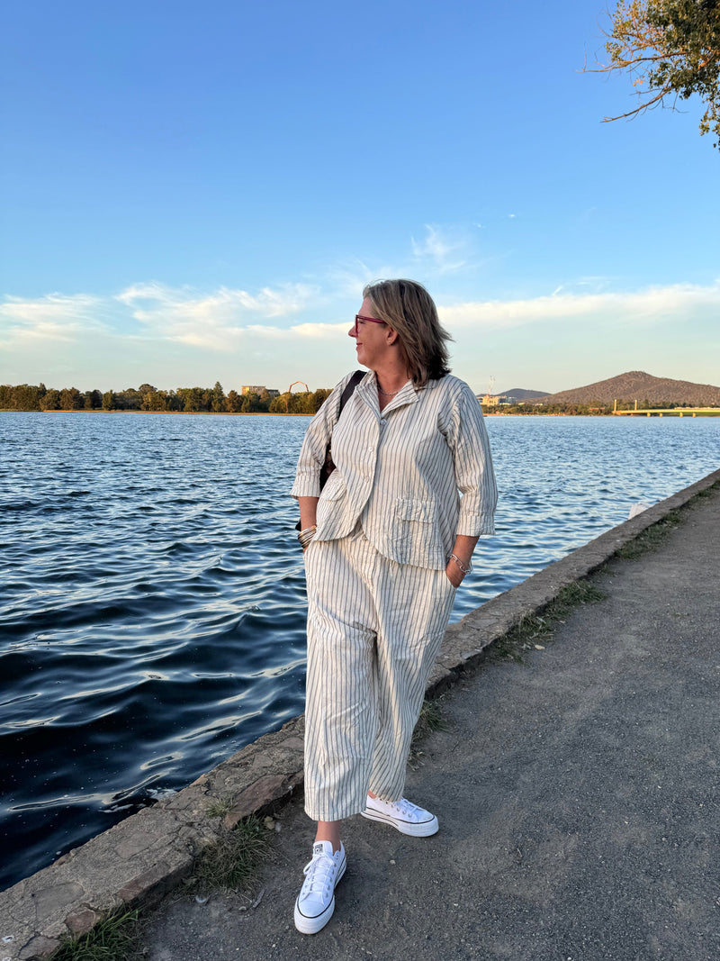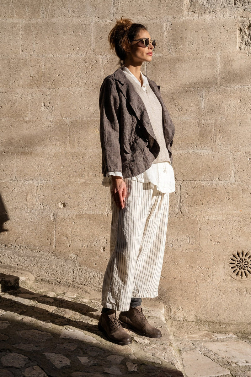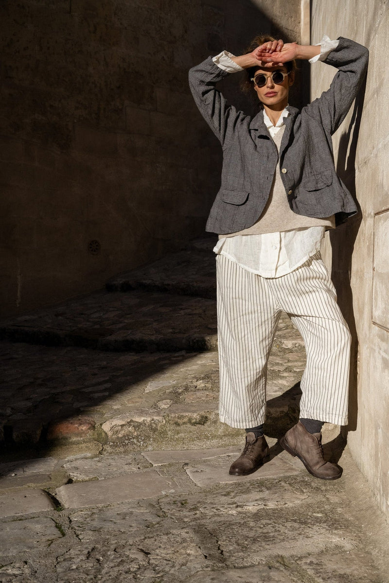 Meg By Design - Darcy Cotton Pant - Cream Ticking