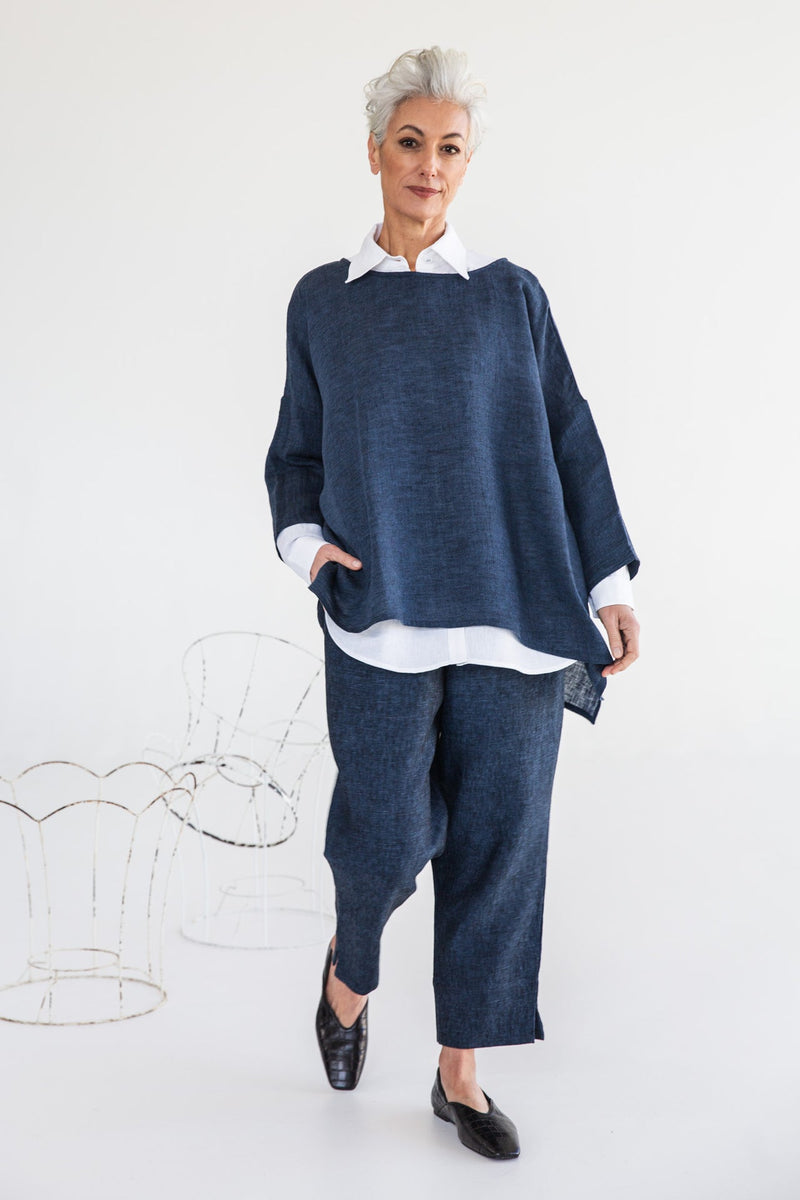Eva’s Sunday - Harry Linen Boxy Top - Navy Gauze