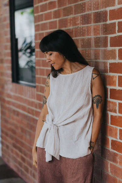 Montaigne - Coco - Front Tie Up Linen Top in Solid - Various Colours