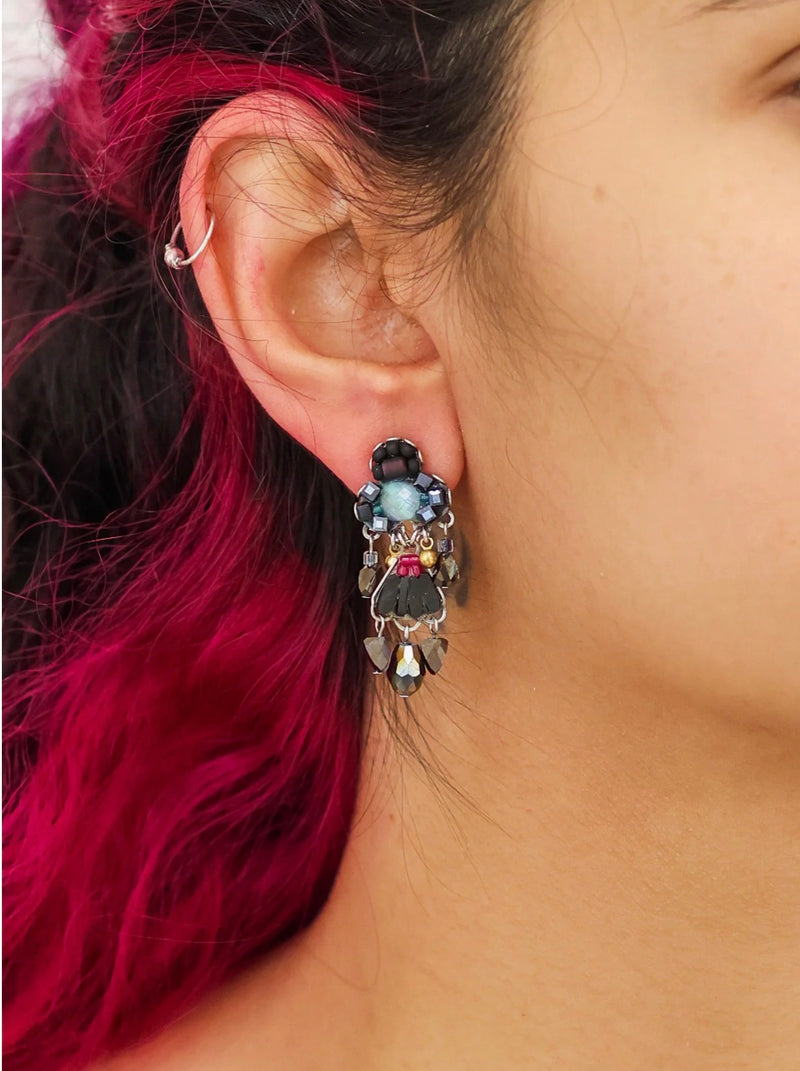 AYALABAR - Beaded Drop Earrings - Obsidian Black Ink