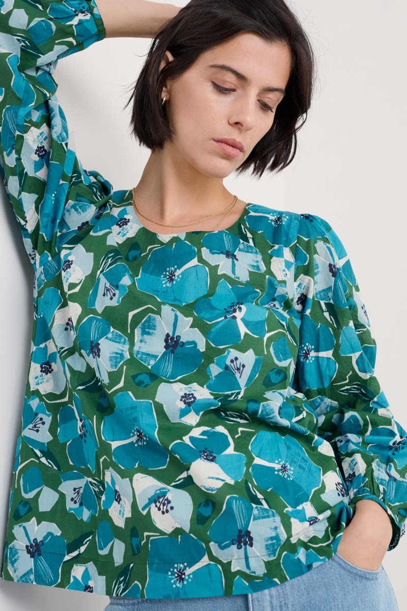 Seasalt Cornwall - ‘Quill’ Top in GOTS-Certified Organic Cotton - Paper Hellebores Forest Green - LAST - Size 14
