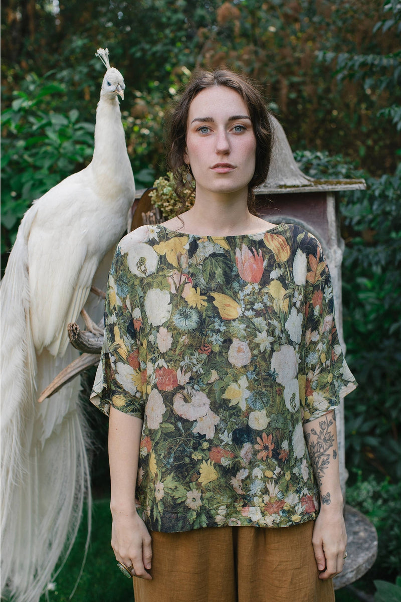 Market Of Stars - Fleur De Lune - Tee Luxe Print Tunic Top - Floral Print & Bees