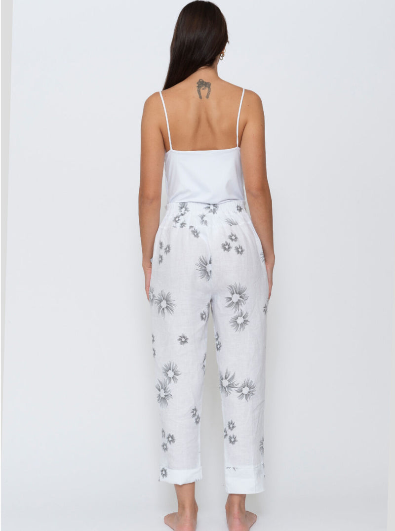 Blueberry - Italian Linen Urchin Print Pants - Beige