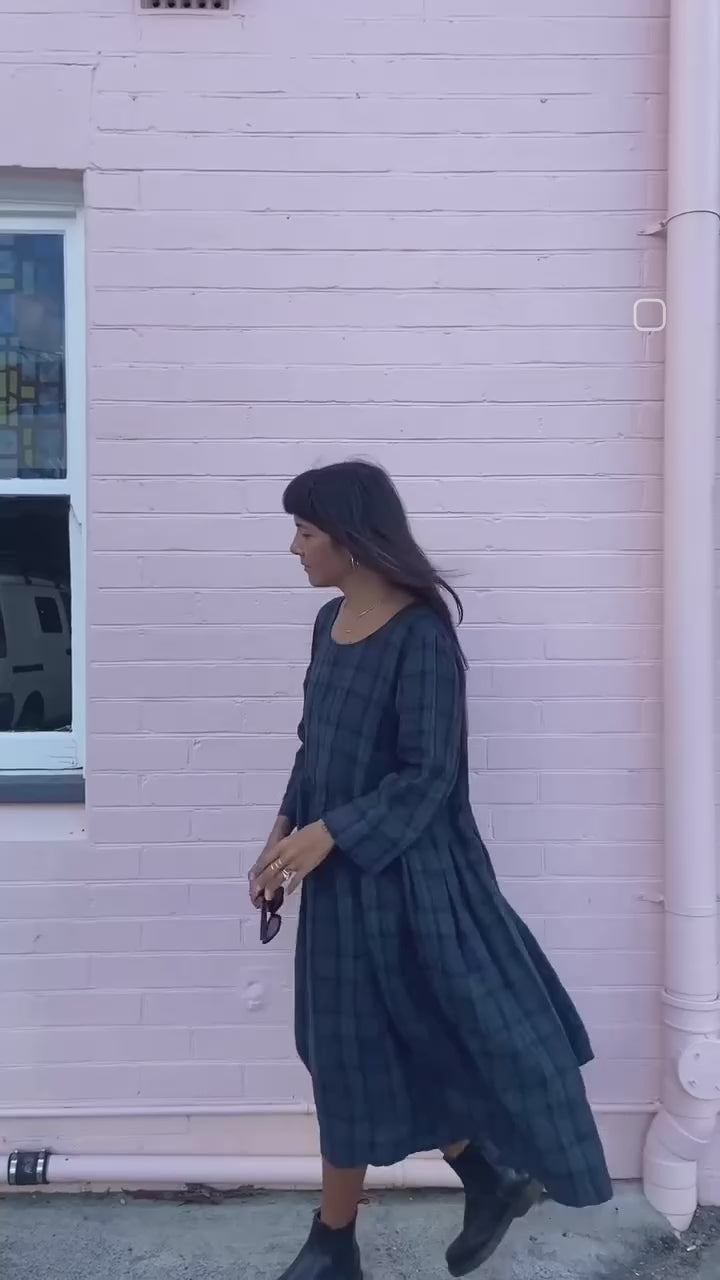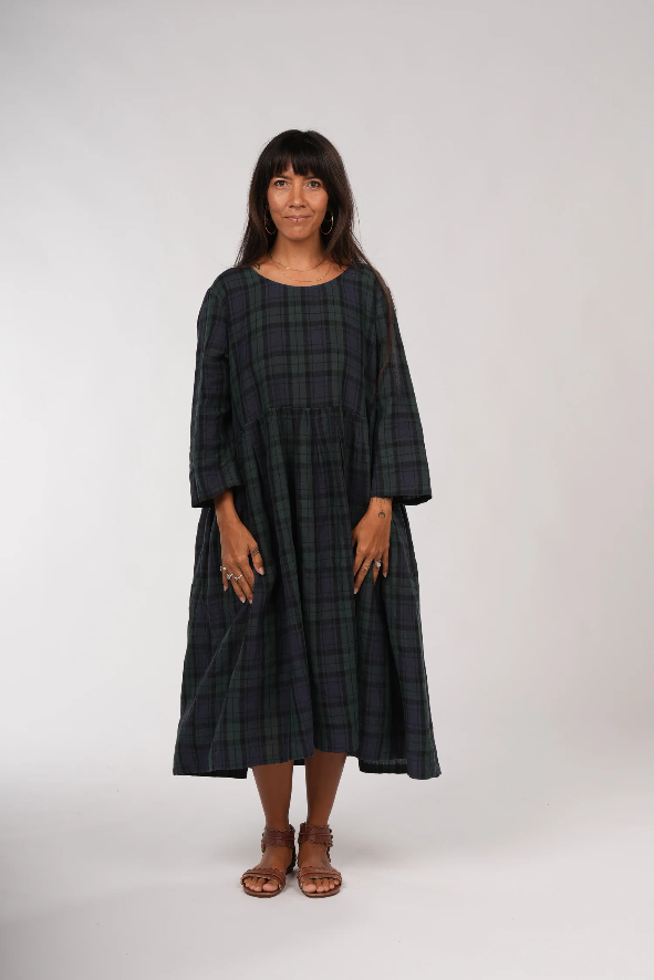Montaigne - Journee - French Linen Dress - Blue Tartan