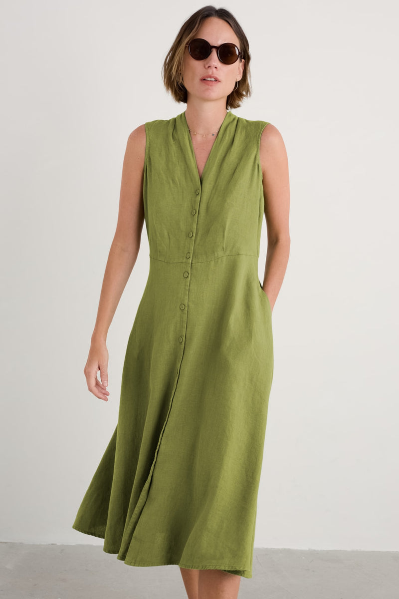 Seasalt Cornwall - ‘Carved’ Wood Linen Sleeveless Dress - Dark Citron