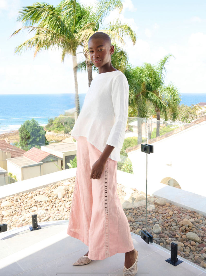 State Of Embrace ‘Fluted’ Linen Top - Ivory