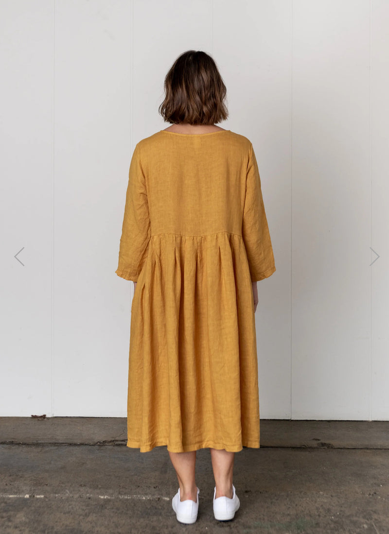 Montaigne ‘Vianne’ Linen Dress Pleats And Side Pockets - Various Colours